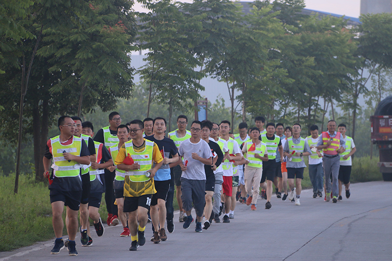 清晨六點,迎著初升的太陽,白洋二標項目操場上,員工們都整裝待發,個個激情滿懷。隨著白洋二標項目經理張清利一聲令下,長跑健兒揮舞著黨旗,心懷信念,迎著朝陽,向終點奔去。青年隊員奮起奔跑,遙遙領先,展現了年輕人拼搏向上的風采;中年隊員沉穩執著,勻速前進,自信向前不落隊;女隊員更是不甘示弱,全力追趕,頗具巾幗不讓須眉之勢。