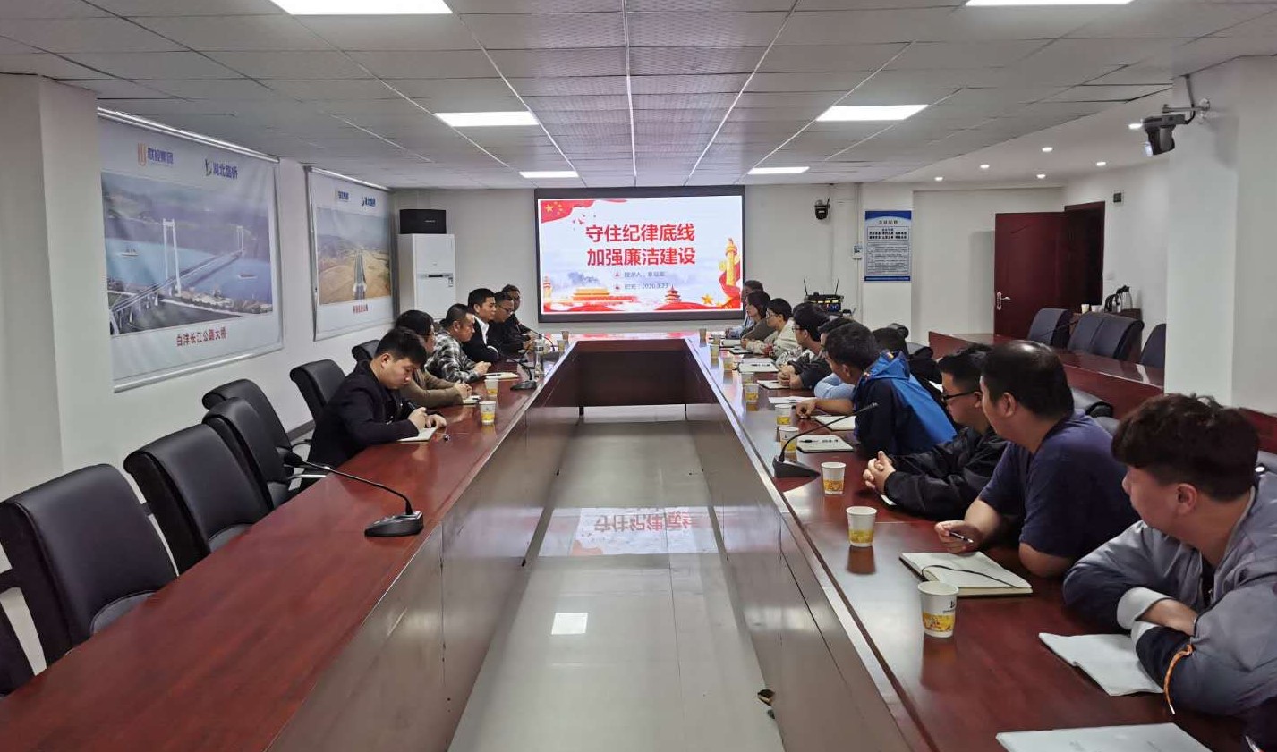 公司黨委委員、副總經理袁觀富同志以“守住紀律底線、加強廉潔建設”為主題,為咸九二標項目部全體黨員、群眾講廉政專題黨課,引導員工強化政治意識、守住紀律底線,營造風清氣正的項目建設環境。他強調,一要增強政治意識、堅定理想信念,深入學習貫徹習近平新時代中國特色社會主義思想,用黨的創新理論武裝頭腦;二要筑牢思想防線、守住紀律底線,加強學習,增強紀律觀念,提升自身修養,從思想上緊繃廉潔自律之弦;三要加強廉政建設,完善監管措施,進一步加強公司制度執行力度,規范權力運行,以永遠在路上的堅韌和執著,推動公司黨風廉政建設;四要發揮模范作用、敢于擔當作為,黨員干部要充分發揮先鋒模范作用,敢于擔當,勇于克難攻堅,為湖北路橋持續健康發展做出積極貢獻。