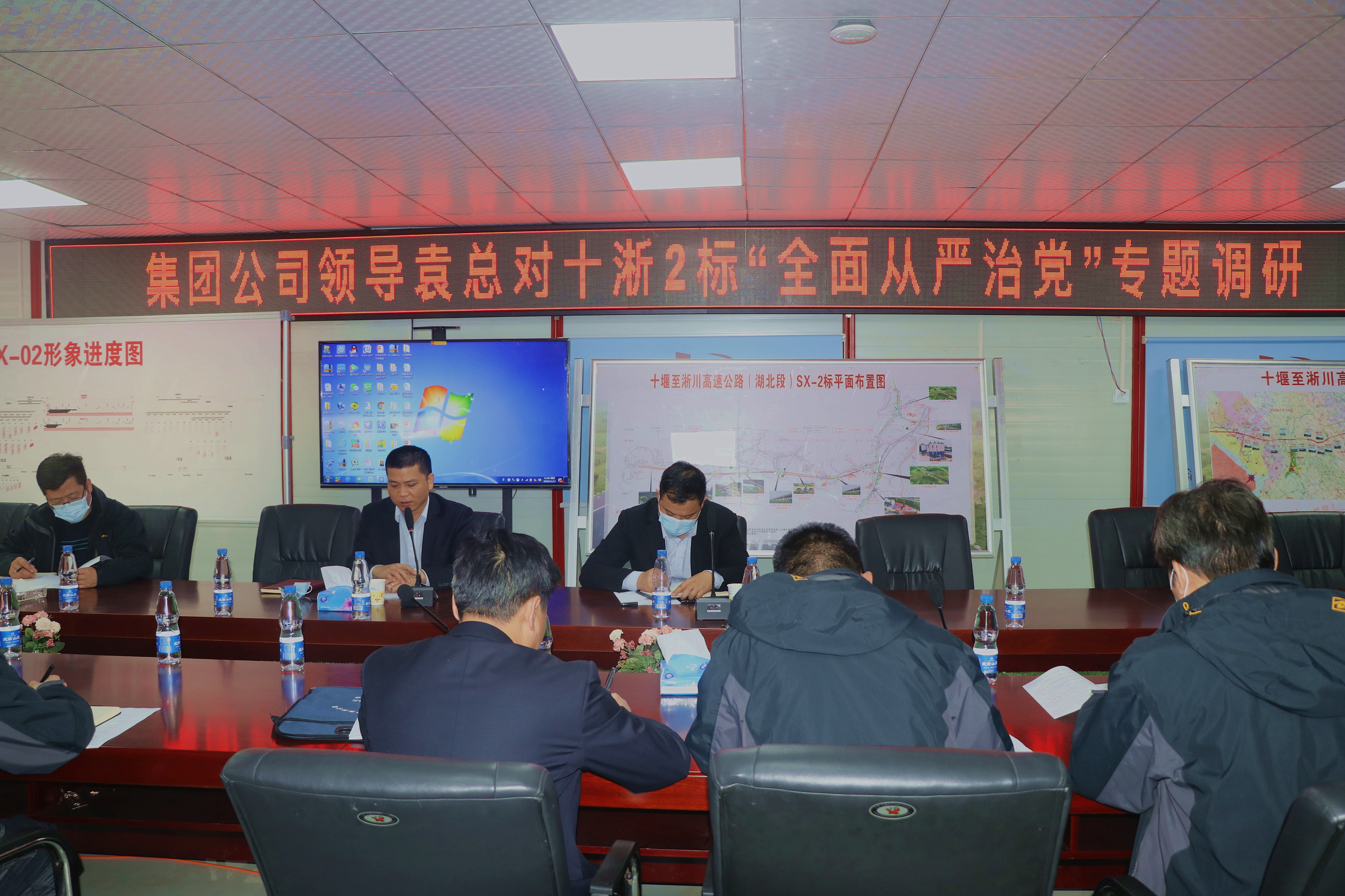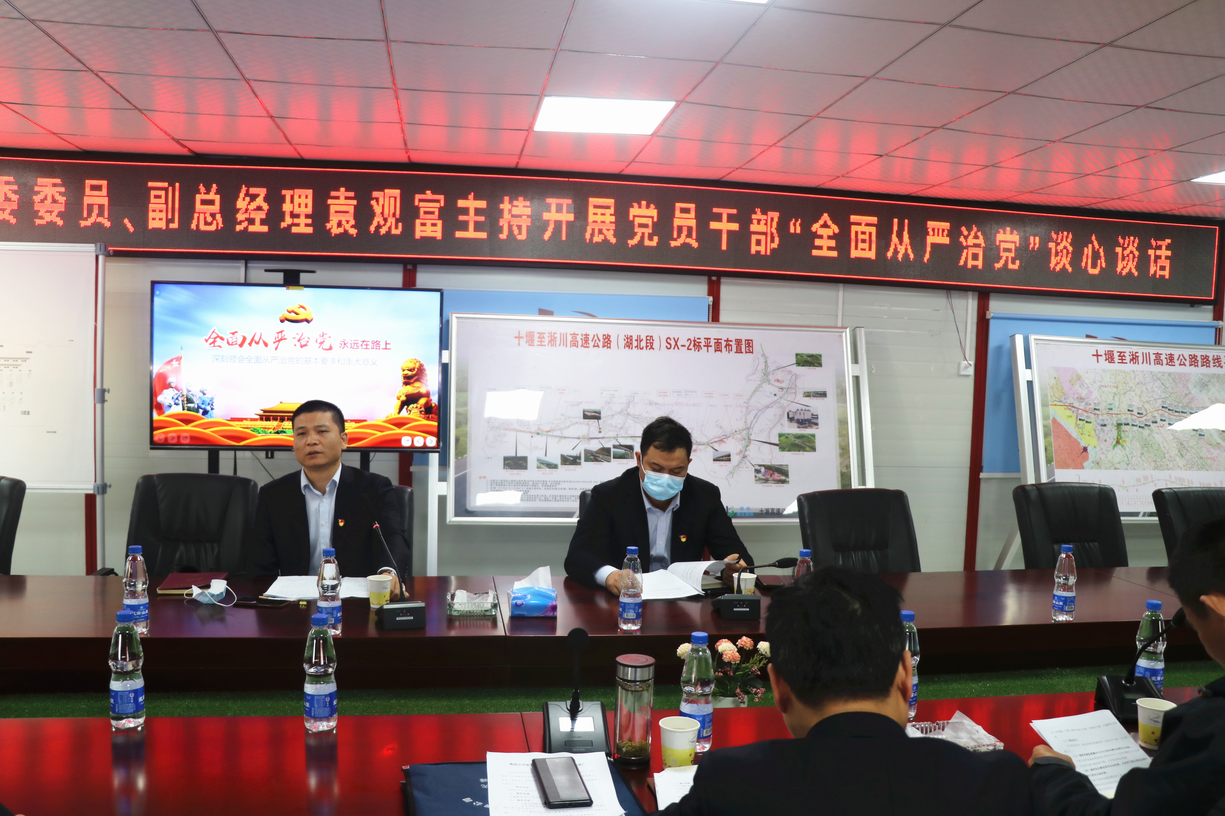 為貫徹中共中央辦公廳《關(guān)于鞏固深化“不忘初心、牢記使命”主題教育成果的意見》文件精神,加強(qiáng)支部黨風(fēng)廉政建設(shè),落實(shí)一崗雙責(zé),11月12日,公司黨委委員、副總經(jīng)理袁觀富深入十淅2標(biāo)項(xiàng)目開展“全面從嚴(yán)治黨”專題調(diào)研,項(xiàng)目黨員干部參與調(diào)研。