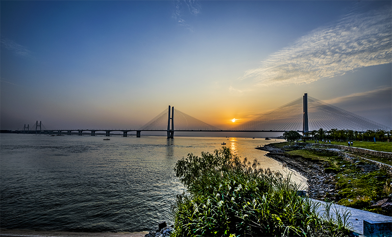 荊州長江公路大橋位于長江中游荊江河段,屬207國道跨長江的重要橋梁。大橋全長4177.6米,在同類橋梁中位列亞洲第一,世界第二。公司承建主橋(200 500 200)m雙塔雙索面漂浮體系預應力砼斜拉橋和(93 150 93)m預應力砼連續箱梁 22*20m預應力砼空心板梁,H型主塔高139.15米,塔基礎為22根孔徑2.5米鉆孔群樁,主塔承臺直徑33米、高6.25米,砼方量達5346.6立方。大橋結構復雜、施工難度大,全橋構造包攬國際國內大跨徑度橋梁多種形式,被國內橋梁專家譽為“中國橋梁建設的博物館”。2002年建成。