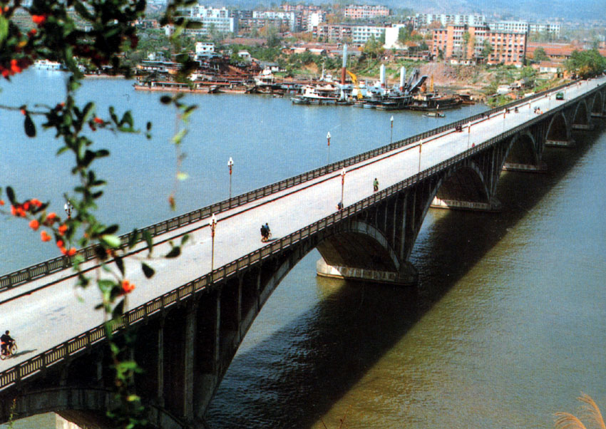 黃柏河大橋是長江葛洲壩水利樞紐的配套項目。全長476.95米,7孔跨徑60米鋼筋混凝土肋型拱,1981年建成,獲得國家和省優(yōu)質(zhì)工程獎。