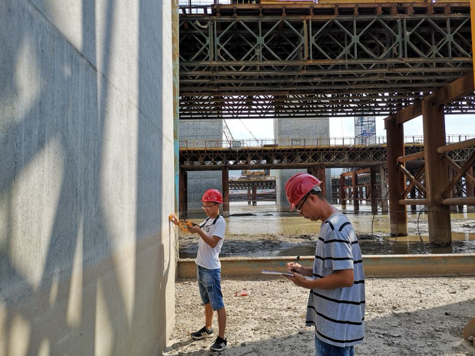 武穴項目試驗室北灘橋墩身鋼筋保護層厚度檢測