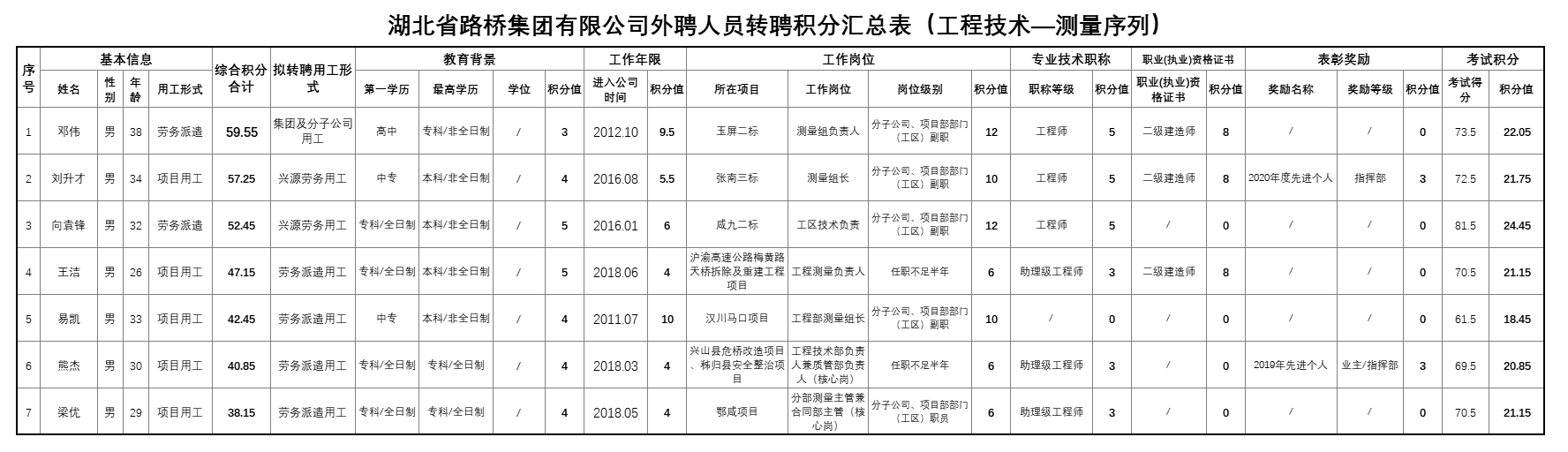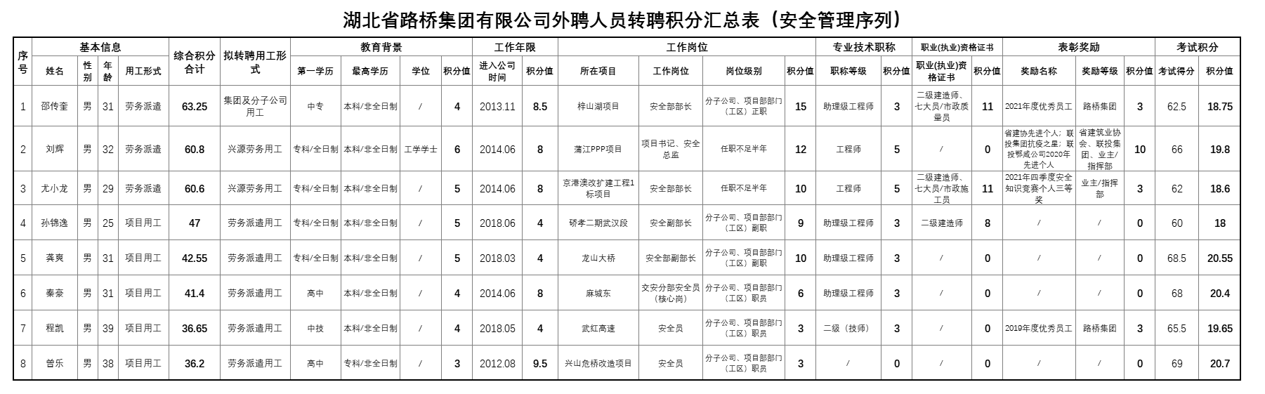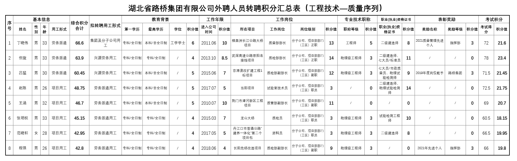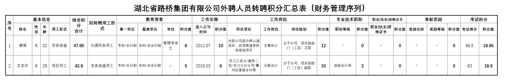 湖北省路橋集團有限公司2022年擬轉聘人員公示