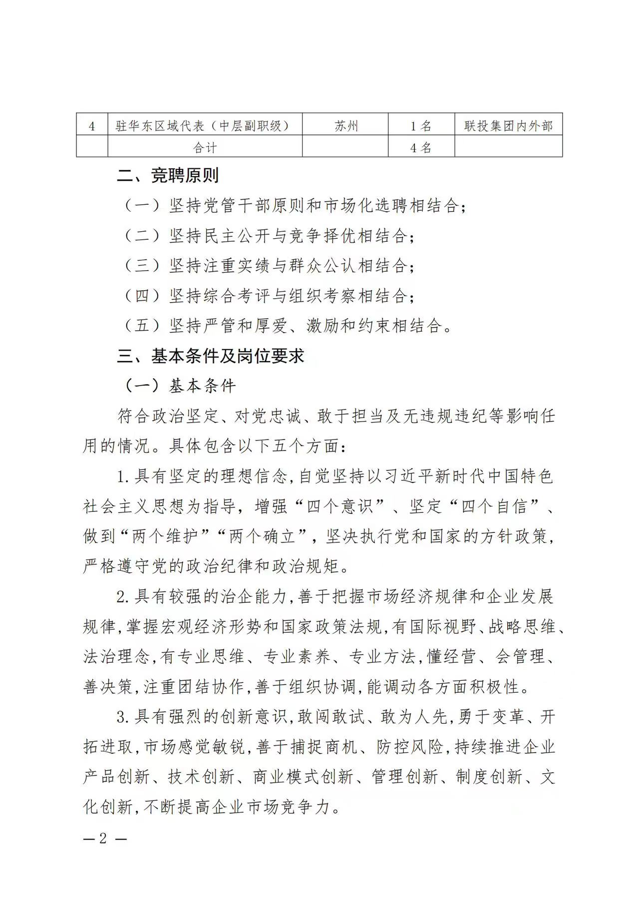 關于駐湖北聯投區域公司總部管理崗位公開競聘的通知
