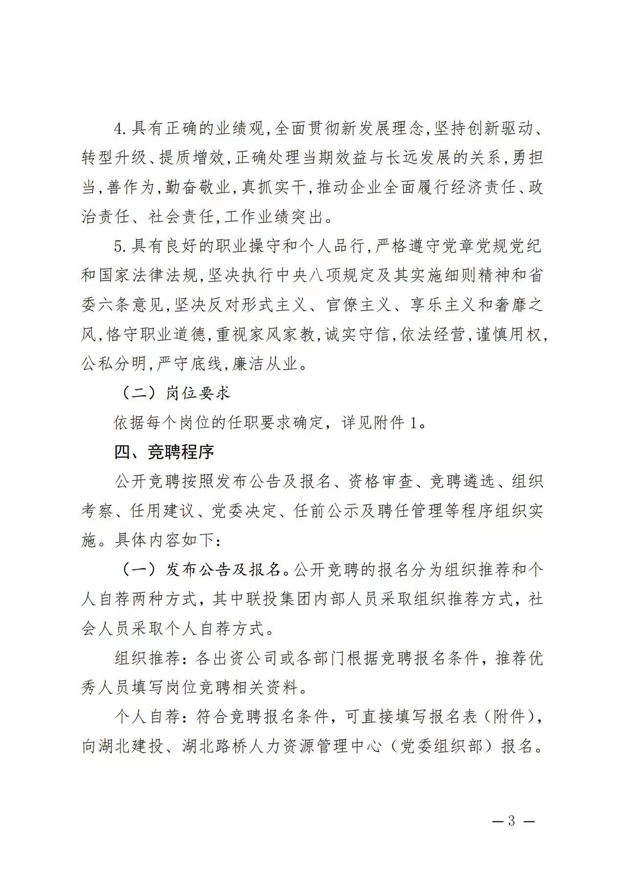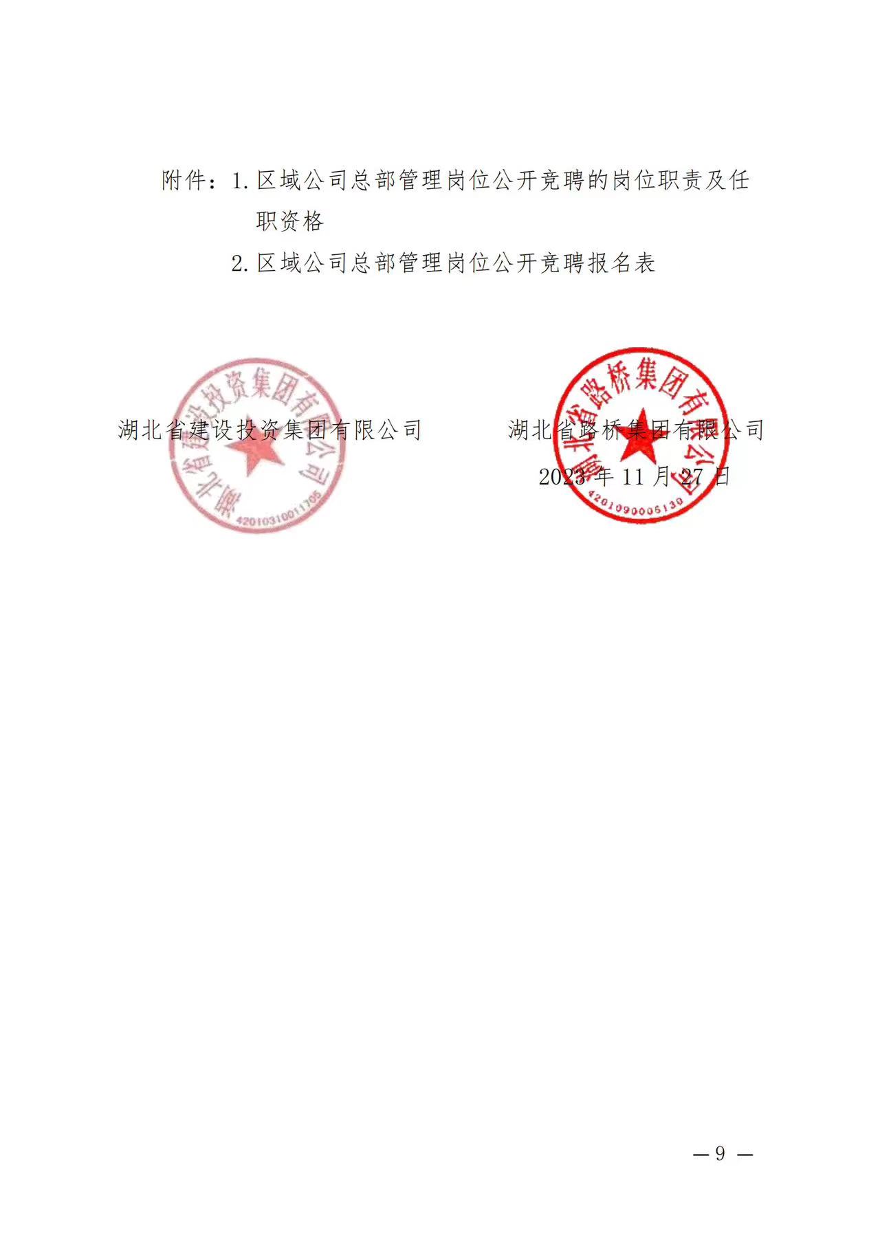湖北省建設投資集團有限公司、湖北省路橋集團有限公司駐湖北聯投區域公司總部管理崗位公開競聘報名初審公示