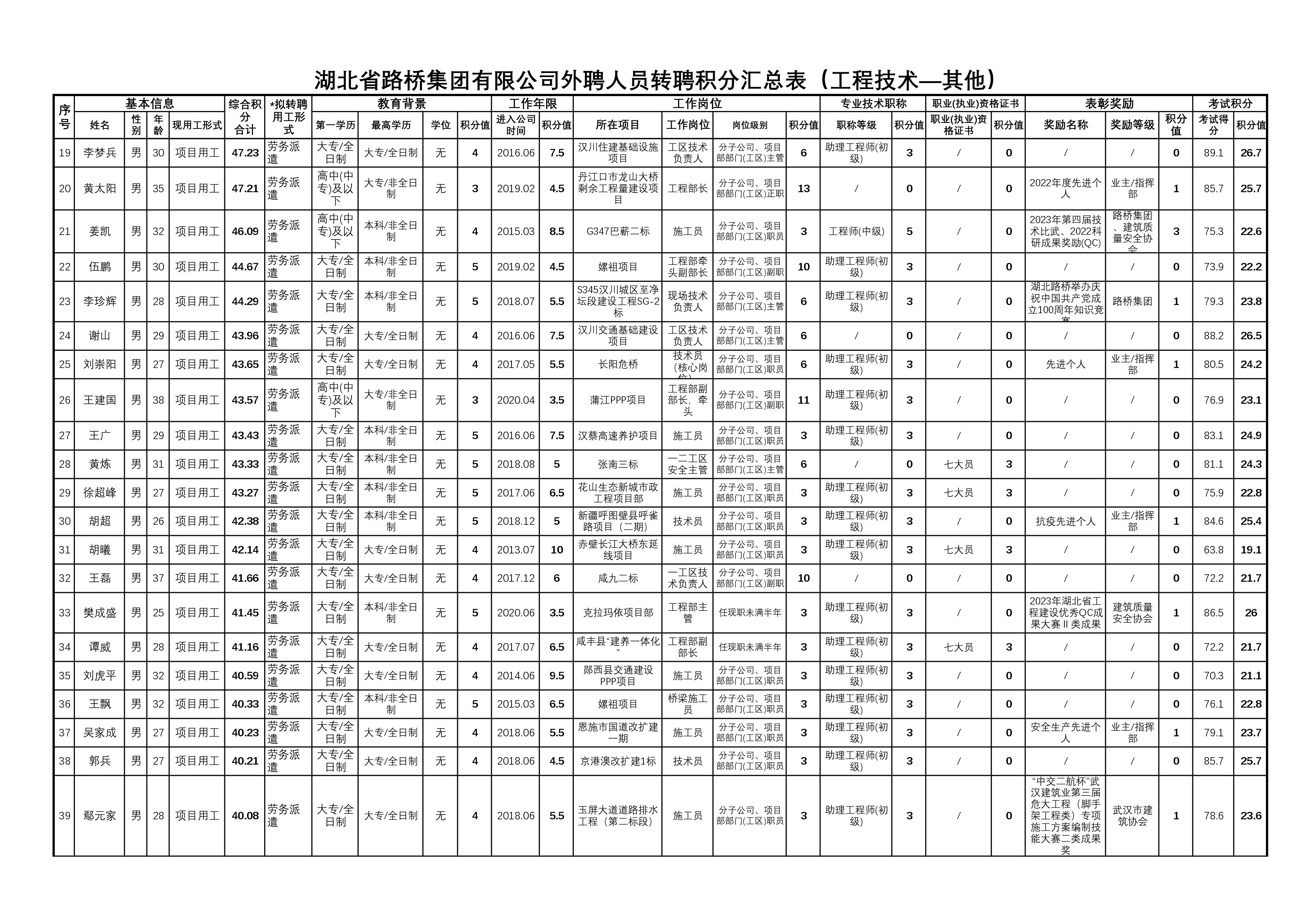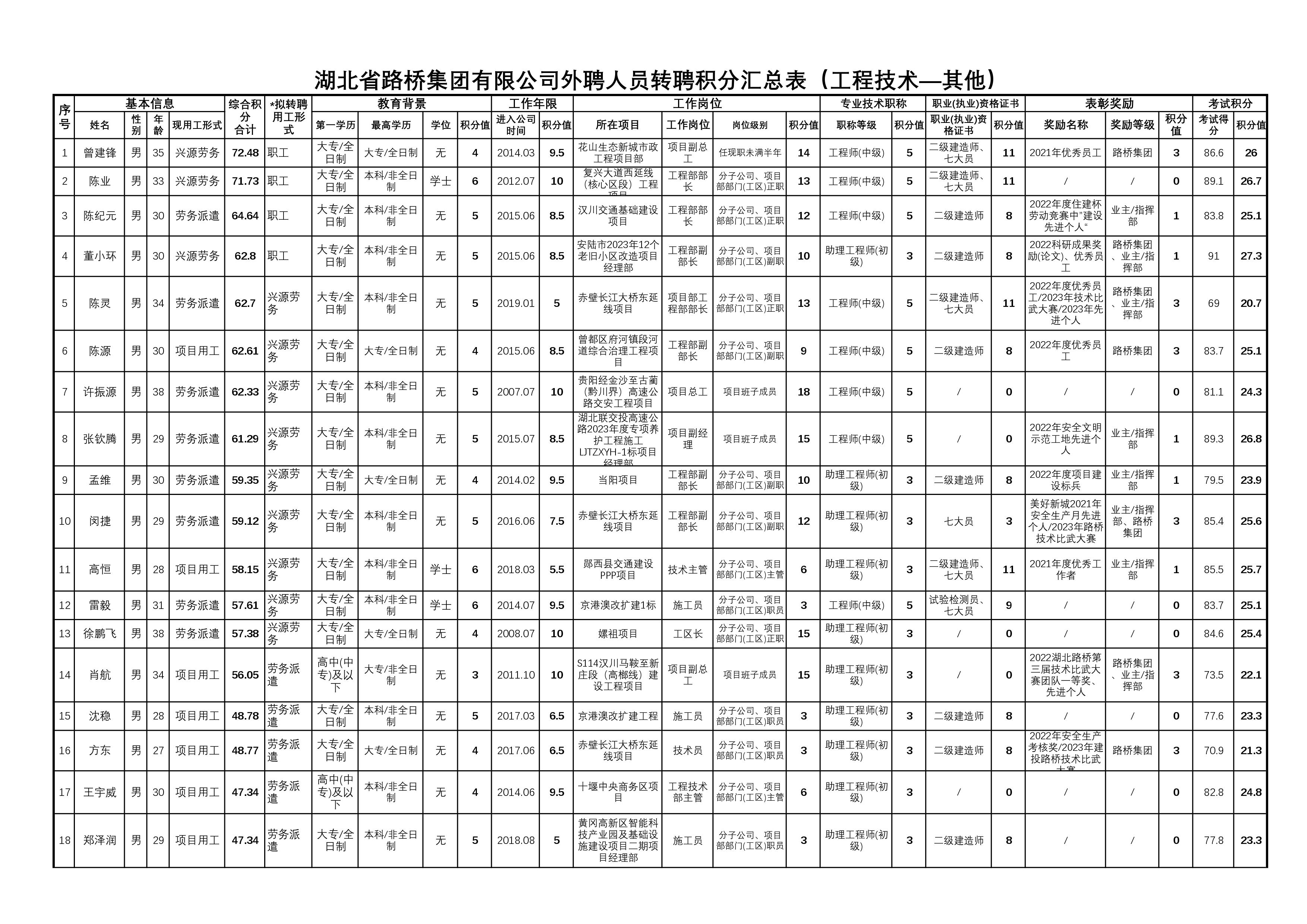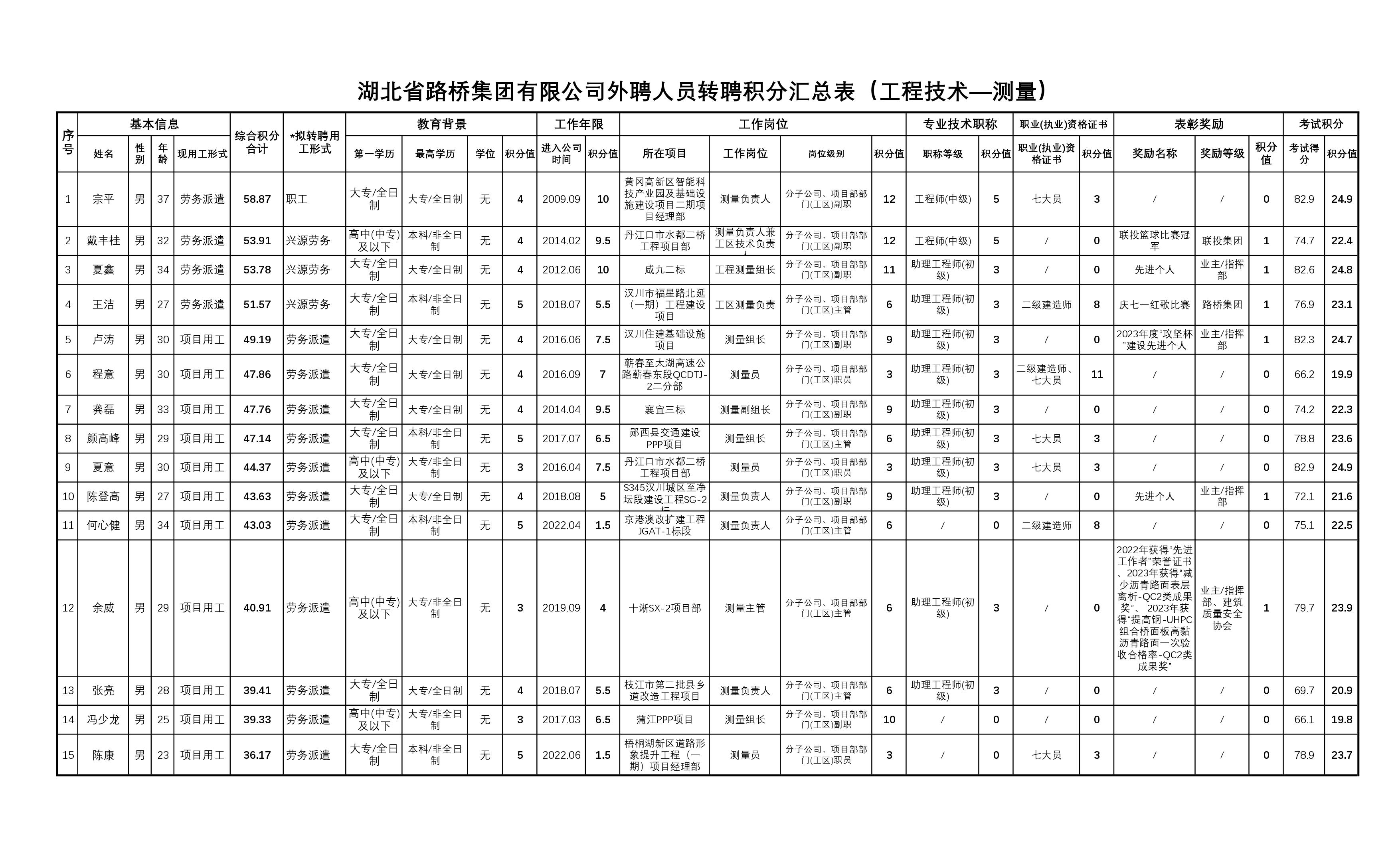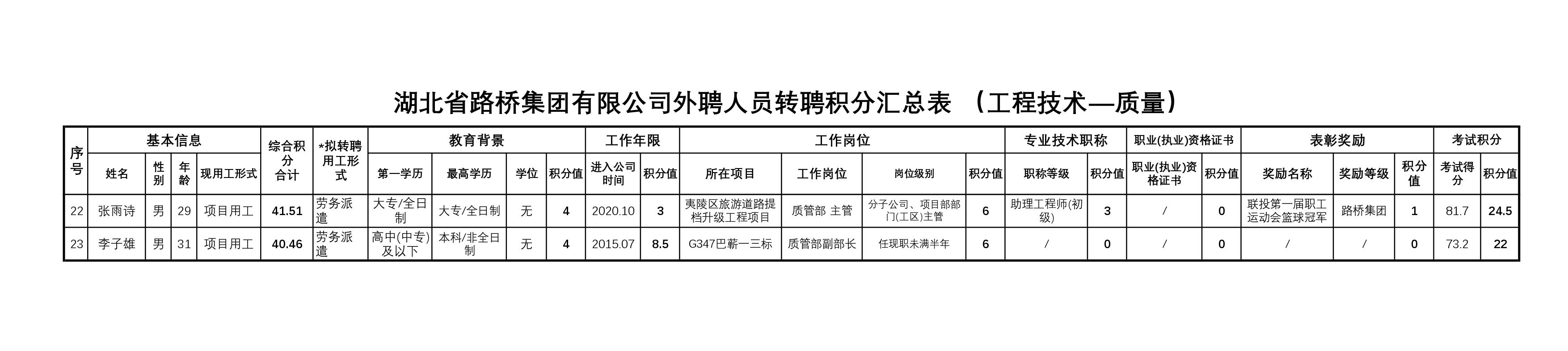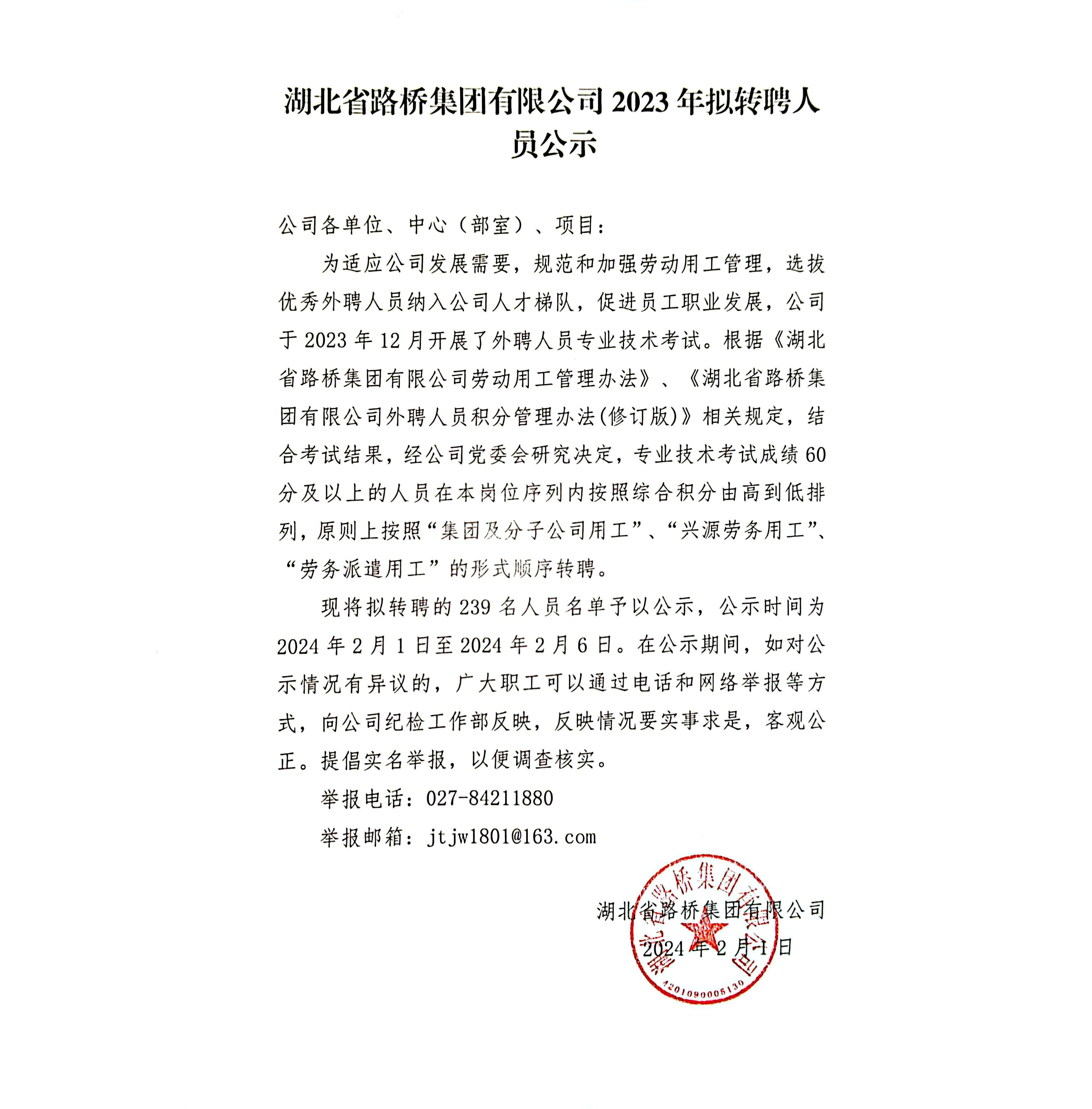 湖北省路橋集團有限公司2023年度擬轉(zhuǎn)聘人員補充公示