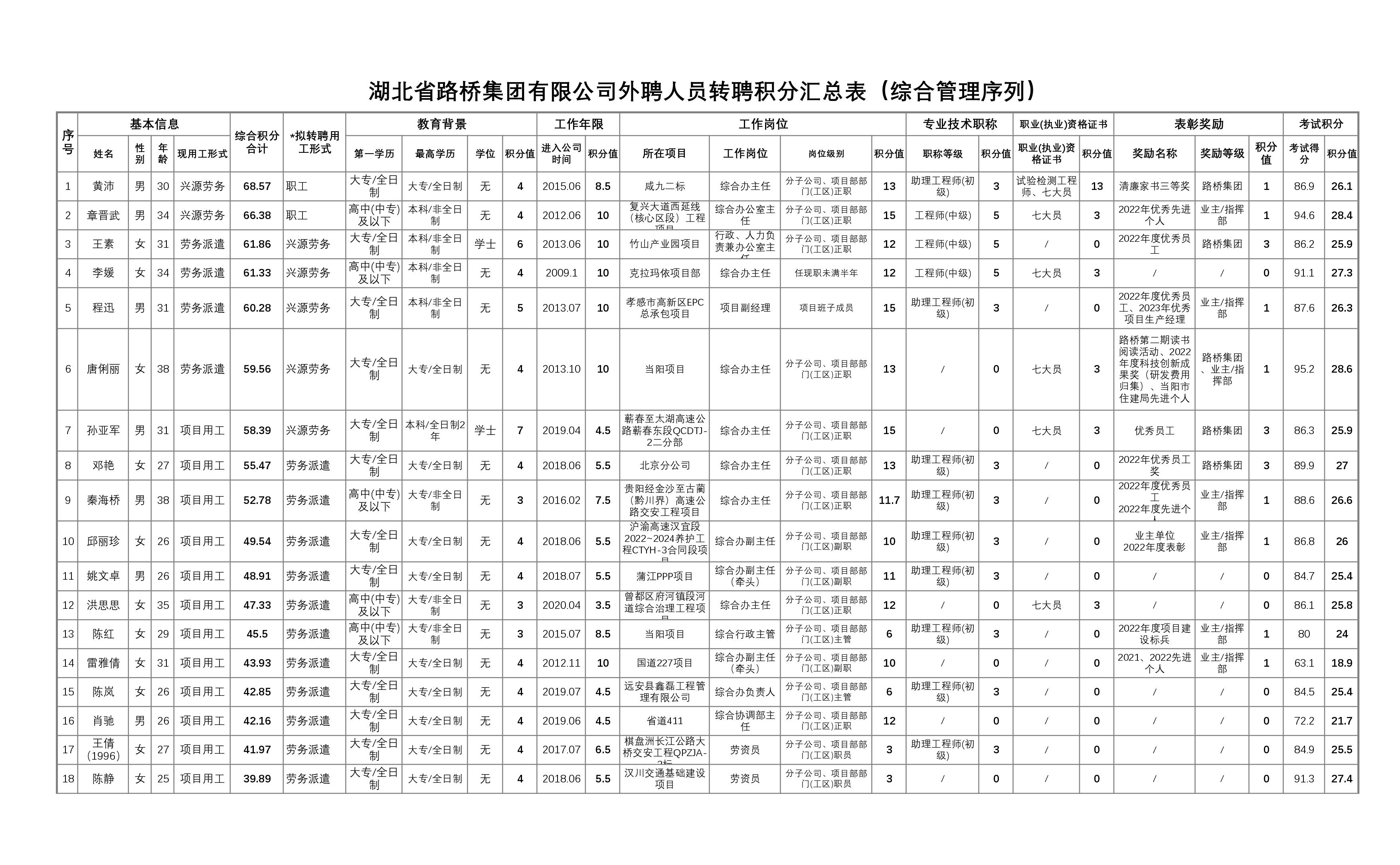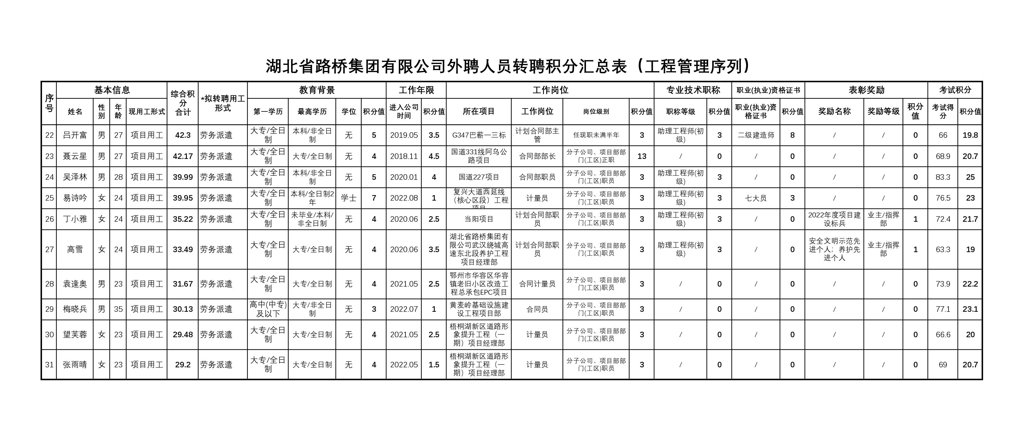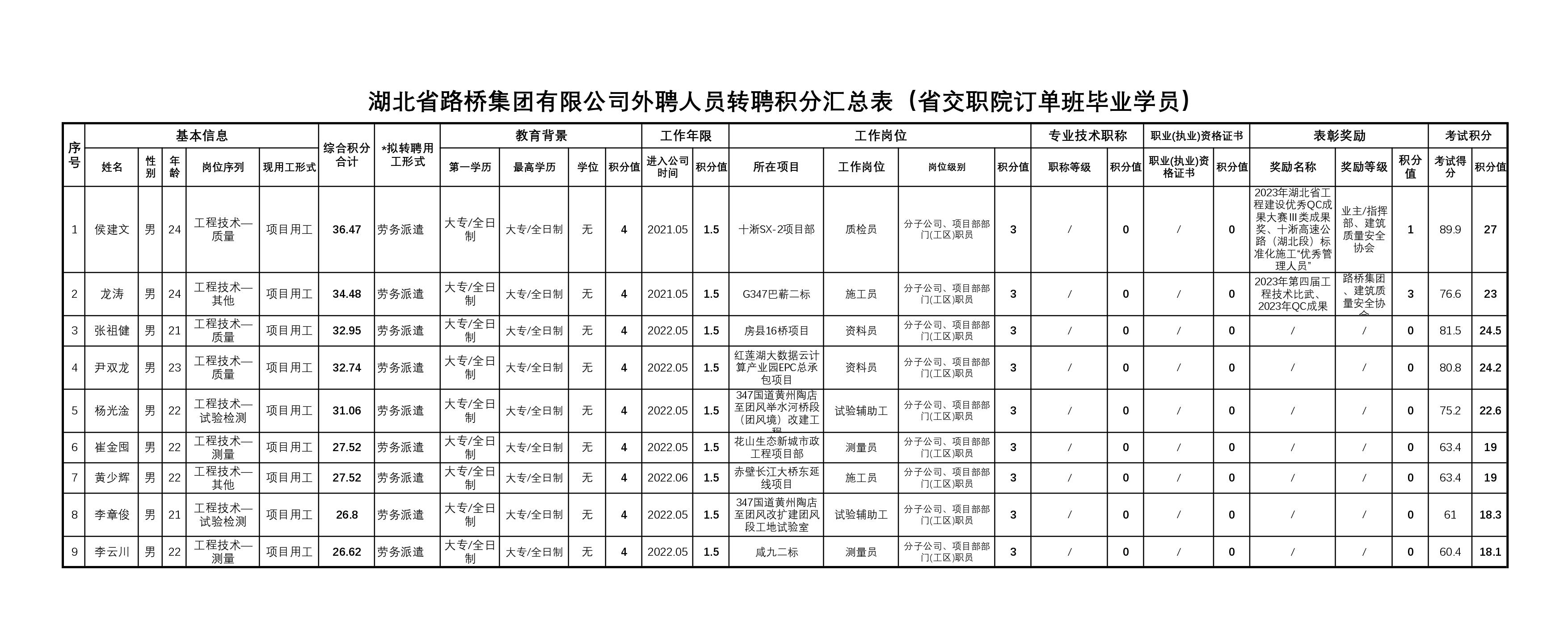 湖北省路橋集團有限公司2023年擬轉(zhuǎn)聘人員公示
