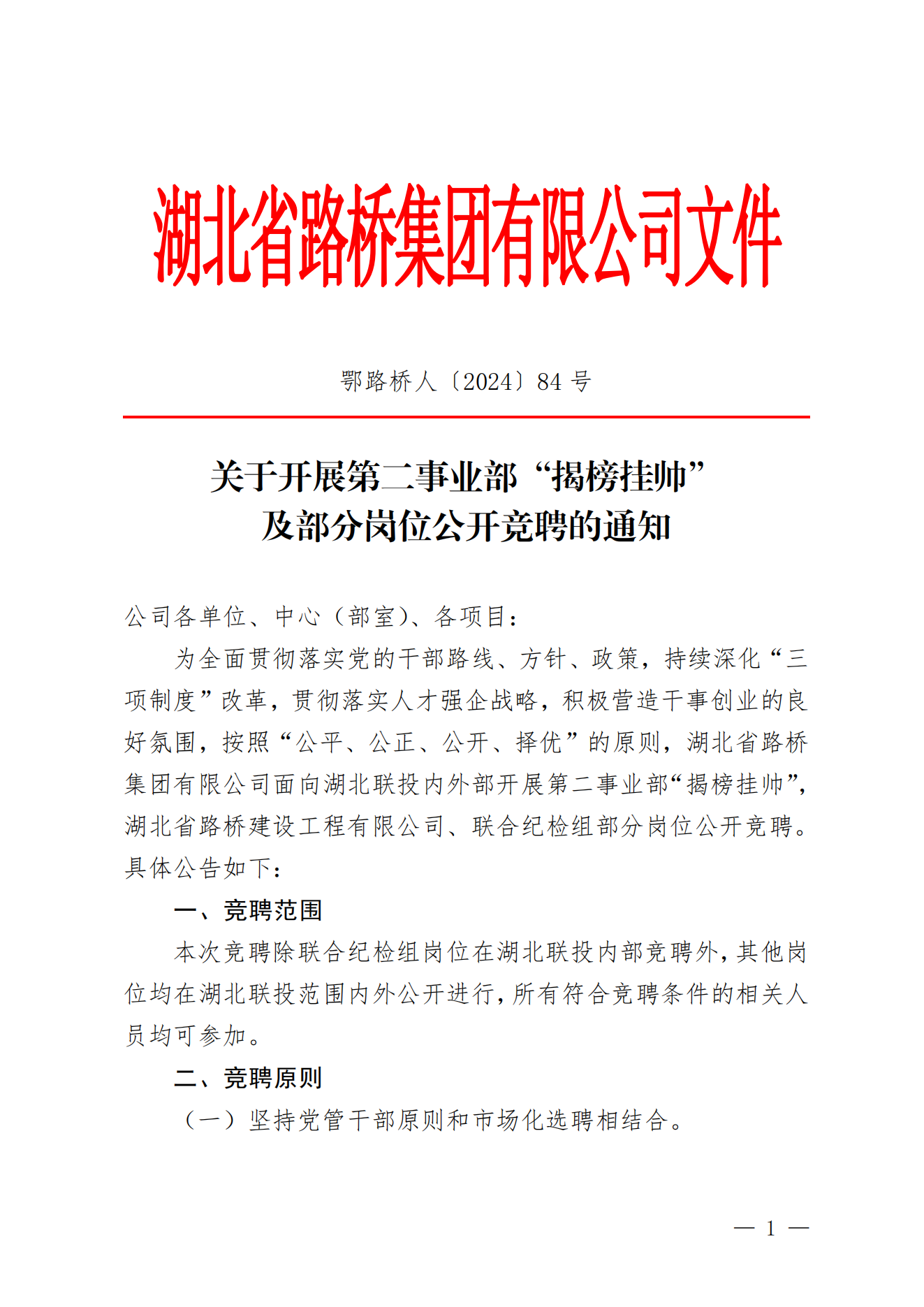 關(guān)于開展第二事業(yè)部“揭榜掛帥” 及部分崗位公開競聘的通知