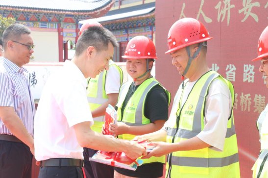 6月3日,湖北路橋以“人人講安全 個個會應(yīng)急——暢通生命通道”為主題,在漢川項目群順利舉行2024年“安全生產(chǎn)月”活動啟動儀式。湖北路橋副總經(jīng)理馬倫權(quán)、安全總監(jiān)朱盾,漢江國投監(jiān)事長肖俊濤,湖北路橋橋隧公司總經(jīng)理張清利及湖北聯(lián)投安全環(huán)保部相關(guān)代表等出席啟動儀式。