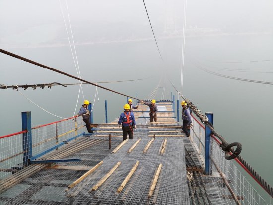 貓道在懸索橋施工中扮演著至關重要的角色,是懸索橋上部結構作業極其重要的高空施工平臺,又被稱為懸空的“生命線”,貫穿索股牽引、緊纜、吊索安裝、主纜纏絲等一系列工序。