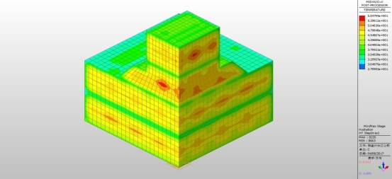 大體積混凝土水化熱分析對保障混凝土結構的耐久性、安全性和施工效率具有重要意義。通過水化熱分析能預測混凝土內部溫度的變化,并根據分析結果合理布置冷水管,從而減少溫度應力,降低混凝土結構變形和開裂的風險。