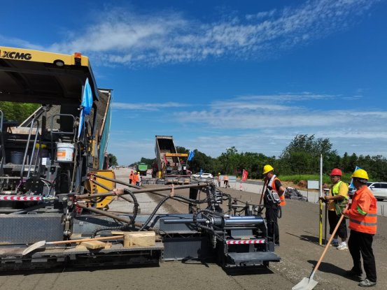 為確保試驗段攤鋪工作的順利進行,赤壁東項目團隊提前部署、積極籌備,認真開展安全生產和施工技術交底。在攤鋪過程中,項目遵循標準化施工流程,嚴格控制攤鋪與碾壓工序的銜接,實現了從運輸到攤鋪、碾壓再到檢測的一體化施工流程,確保底基層試驗段、基層試驗段的壓實度、平整度、縱斷高程和橫坡等各項指標均符合規范及設計要求。