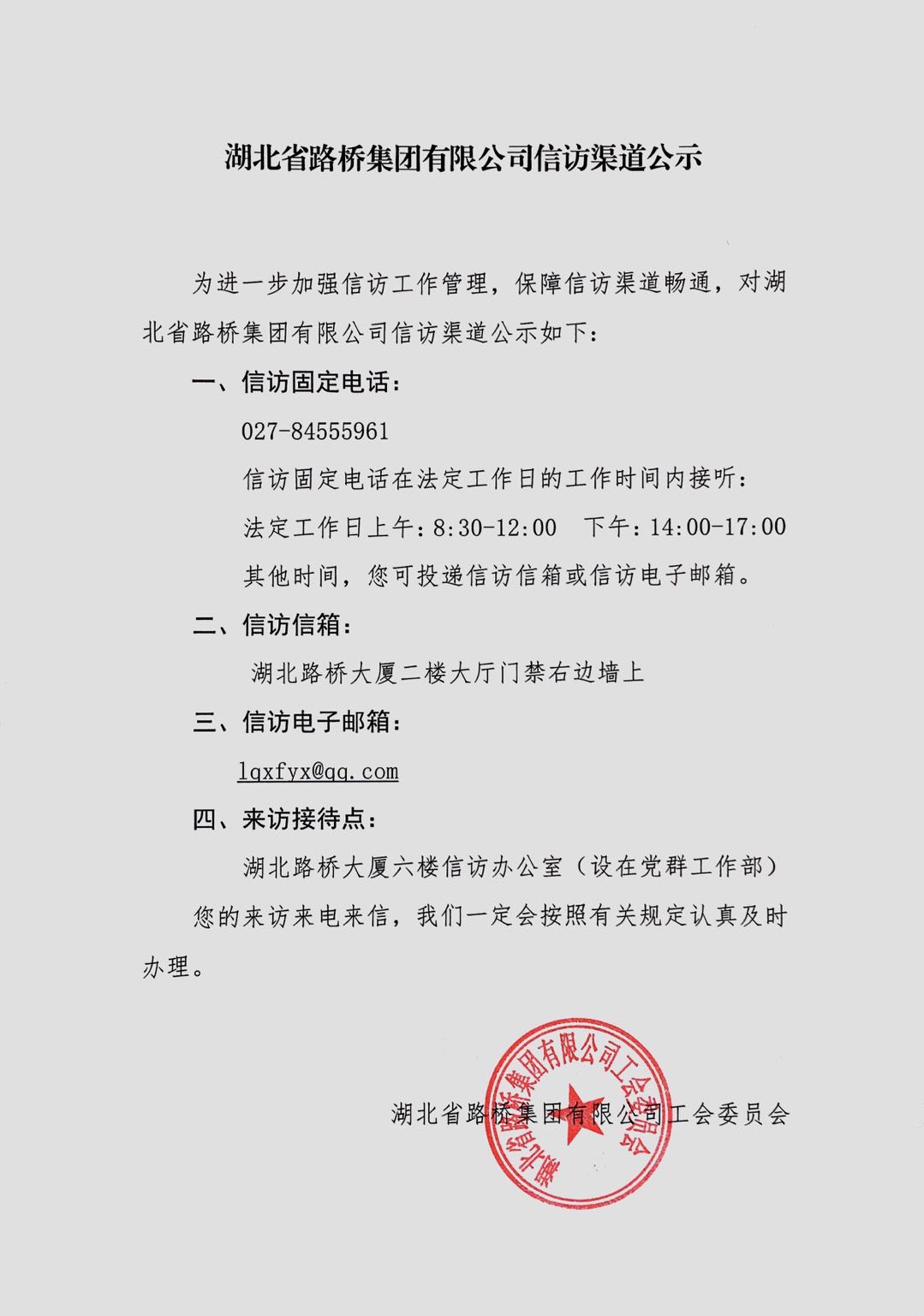 湖北省路橋集團有限公司信訪渠道公示